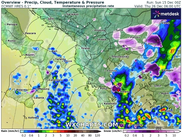 Μια έκπληξη έκρυβε το πρωινό run του ευρωπαϊκού μοντέλου καθώς έβγαλε… χιόνια στην Αττική την περίοδο των Χριστουγέννων. Η τάση δείχνει αρκετές χιονοπτώσεις αρχικά στα βόρεια και στις 26 Δεκεμβρίου, γυρίζει σε χιονιά ανατολικών προσηνέμων, με τα χιόνια να κάνουν την εμφάνισή τους σε Αττική και Εύβοια.