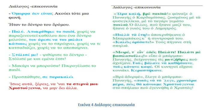 Ένα τέτοιο παράδειγμα παράλληλων και τεμνόμενων βιωμάτων, συνάντησης και μοναξιάς, δίνεται μέσα από δύο επίκαιρα διηγήματα: του Φώτη Κόντογλου «Χριστούγεννα στη Σπηλιά» (1957)² και του Ευγένιου Τριβιζά «Ένα δέντρο, μια φορά» (2007)³, τα οποία μας προσφέρουν τη θέαση δύο διαφορετικών εμπειριών των Χριστουγέννων.