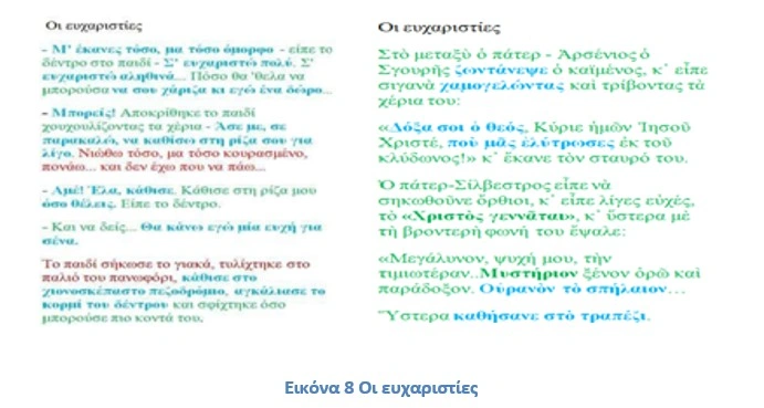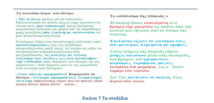 Παράλληλα αποσπάσματα από τα δύο διηγήματα τα οποία μελετήθηκαν συγκριτικά στο πλαίσιο φιλαναγνωσίας από μαθητές της Ε΄ τάξης του 9ου Δημοτικού Σχολείου «Γεώργιος Γλαράκης » τον Ιανουάριο του 2020, ως προς την παρουσία σε αυτά παραδειγμάτων ήπιων δεξιοτήτων «soft skills» : Δημιουργική σκέψη, Επίλυση προβλημάτων, Ενσυναίσθηση, Φαντασία, Πειθώ, Συναισθηματική έκφραση, Συνεργασία, Διαχείριση αποτυχίας, Επιμονή, Yπομονή. Διαπιστώθηκε ότι τα δυο κείμενα στο σύνολο παρείχαν ισότιμη ευαισθητοποίηση στους μαθητές σε soft skills