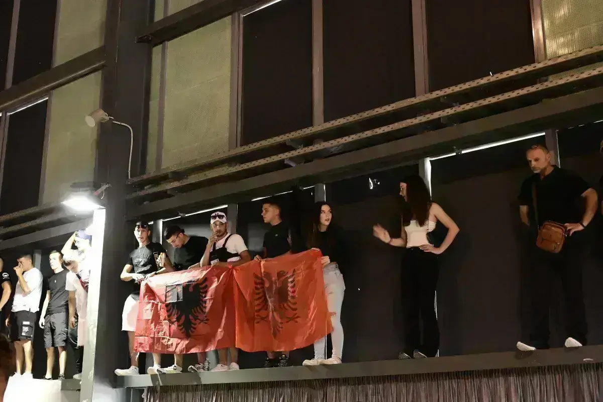 Με μπλούζες «εθνικής υπερηφάνειας» το πλήθος – Εκατοντάδες αλβανικές σημαίες στο Γαλάτσι