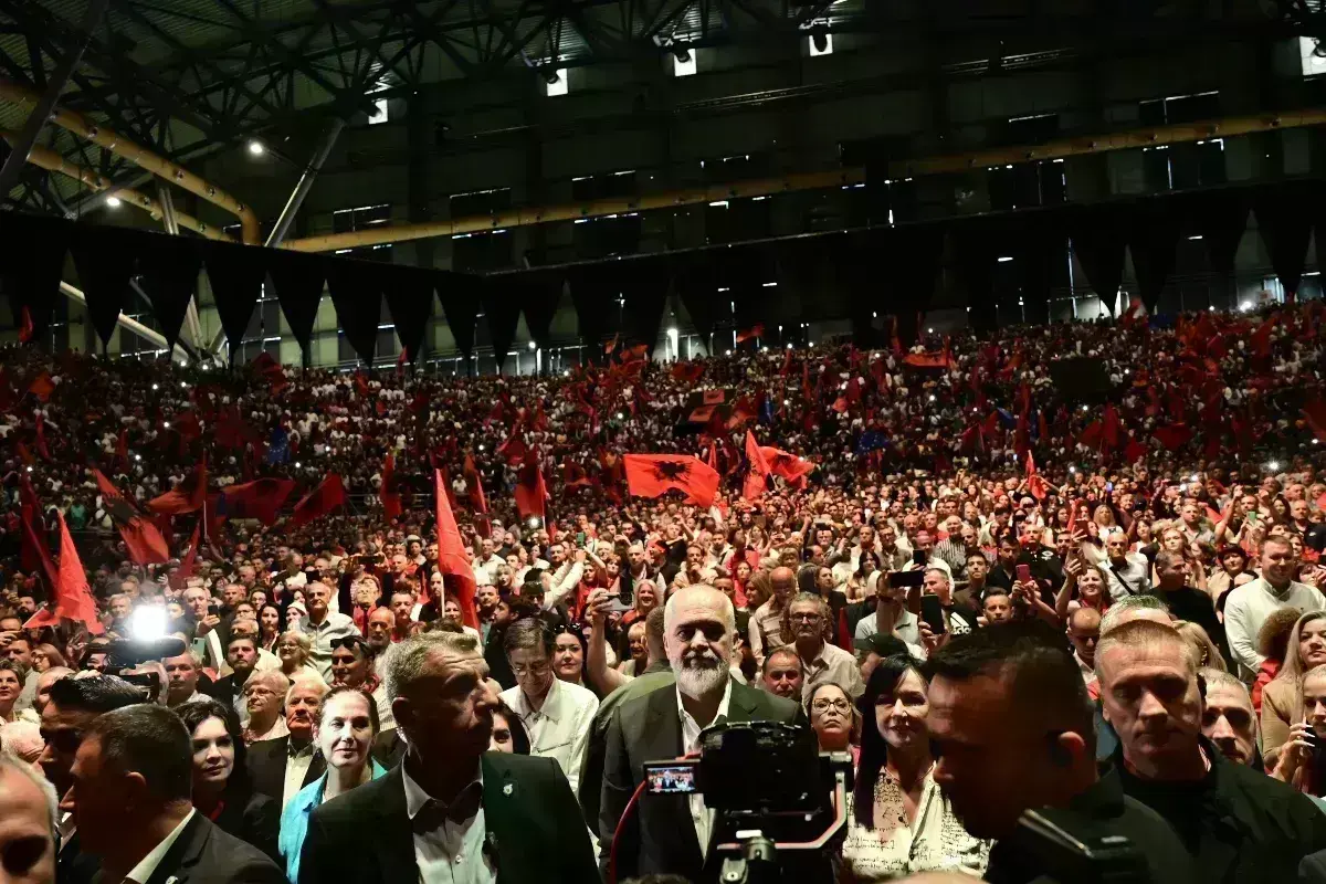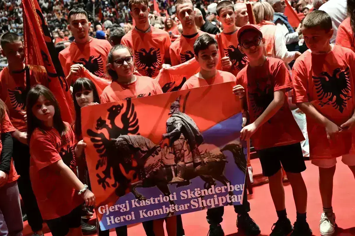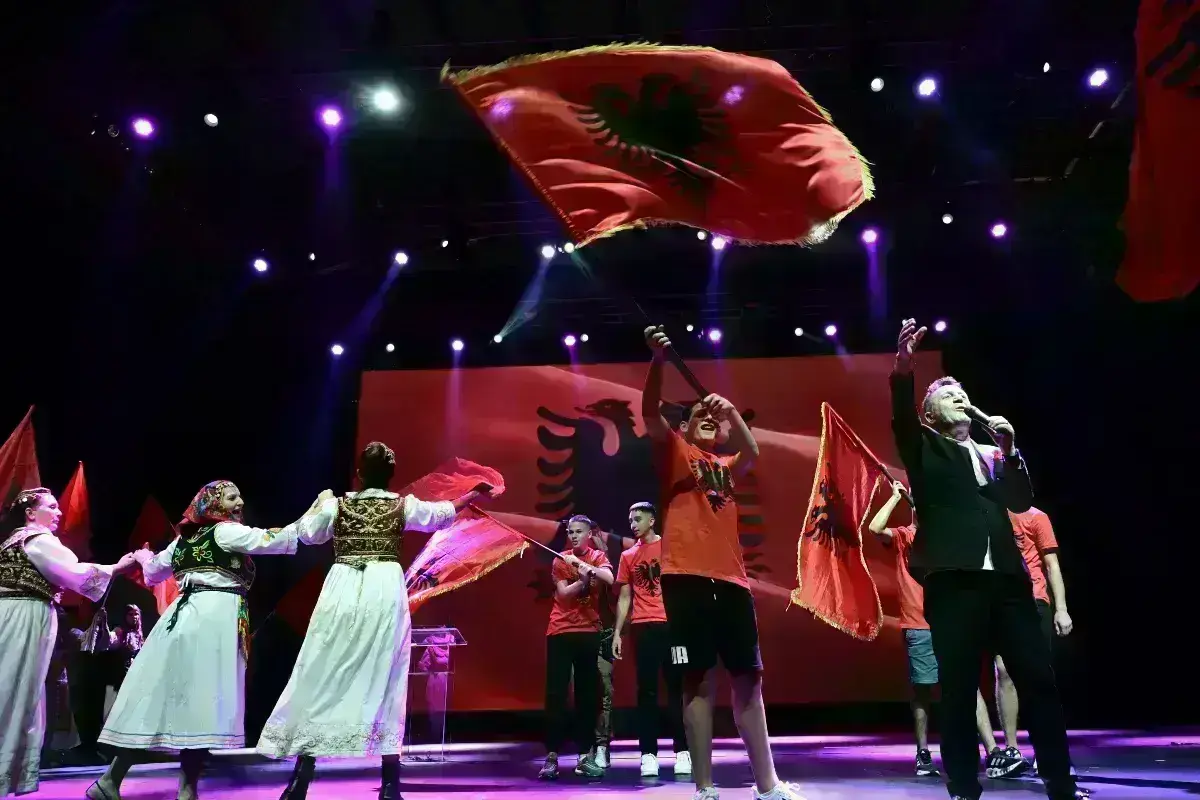 Μήνυμα με Αλέξη Ζορμπά έστειλε ο Έντι Ράμα, ενώ το κλειστό του Γαλατσίου έχει γεμίσει από χιλιάδες Αλβανούς, που κατοικούν στη χώρα μας.