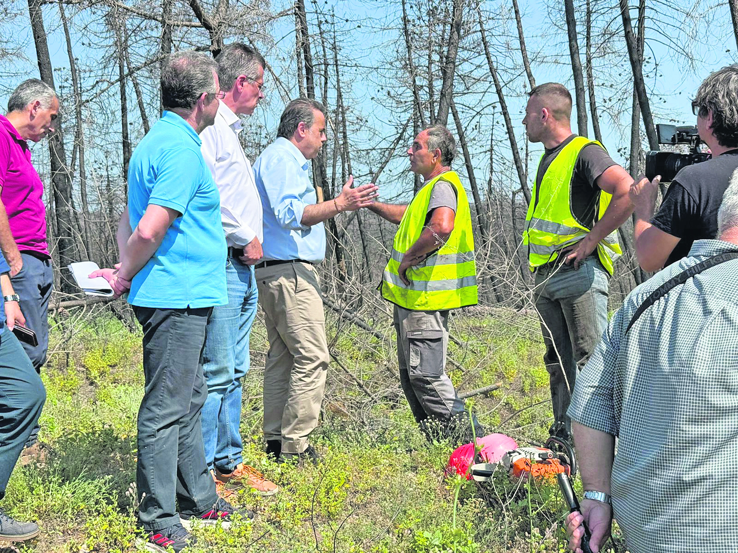 Περισσότερα σε σχέση με την περίοδο πριν από τις καταστροφικές πυρκαγιές στη Δαδιά είναι τα ζευγάρια του μαυρόγυπα που έφτιαξαν φέτος φωλιές, ενώ και η χλωρίδα αναγεννιέται, όπως ανέφερε ο υπουργός Περιβάλλοντος και Ενέργειας, Σταύρος Παπασταύρου, ο οποίος επισκέφθηκε πρόσφατα την περιοχή και επιθεώρησε τα εκεί αντιδιαβρωτικά και αντιπλημμυρικά έργα (αριστερά, φωτογραφικό στιγμιότυπο από την επίσκεψη).