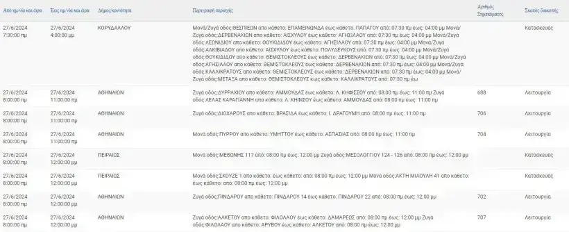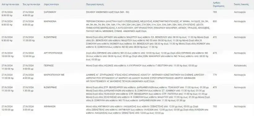 Οι δήμοι της Αττικής που θα επηρεαστούν από τις διακοπές ρεύματος είναι οι παρακάτω: