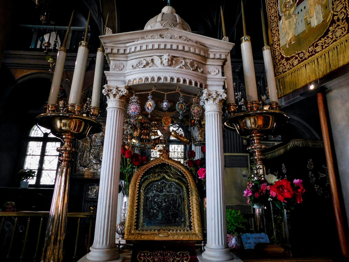 Πιστοί ανεβαίνουν γονατιστοί στο ναό της Παναγίας