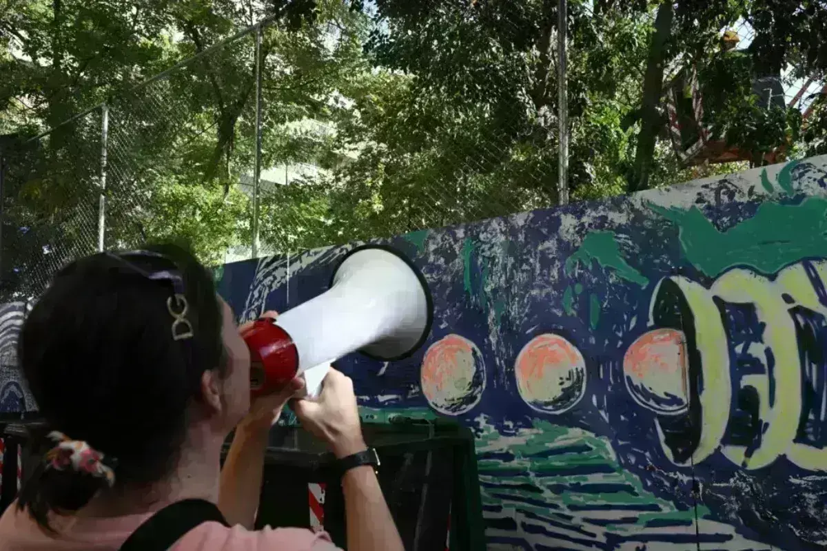 Σύμφωνα με τους κατοίκους της περιοχής, κόβονται δέντρα στην πλατεία ενώ τονίζουν πως η περίφραξη παραβιάζει τις προϋποθέσεις ασφαλείας, καθώς ο χώρος που αφήνεται ελεύθερος είναι λιγότερος από τα 3,5 μέτρα.
