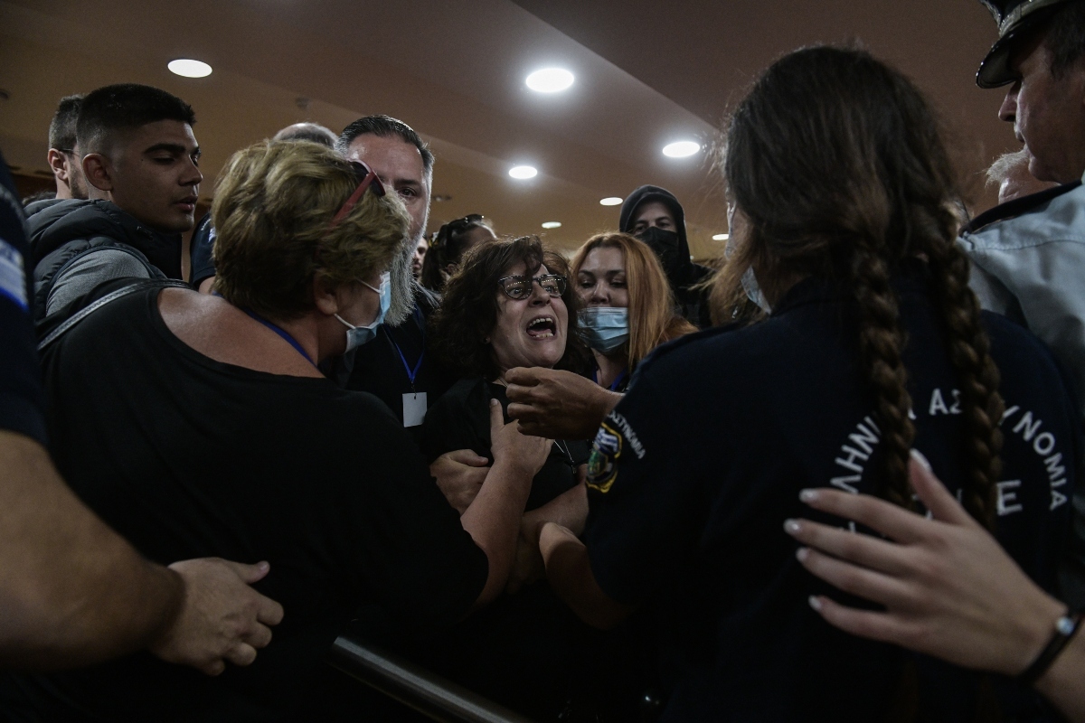 Με τη διακοπή της δίκης προκειμένου να συζητήσουν επί δικονομικών ζητημάτων, συγκεντρωμένοι στο ακροατήριο υποστηρικτές του Ηλία Κασιδιάρη φώναξαν το σύνθημα «Ηλία θυμήσου, είμαστε μαζί σου» με την πλευρά των αλληλέγγυων στην οικογένεια Φύσσα να απαντά «ο Παύλος ζει, τσακίστε τους Ναζί» ενώ εκσφενδονίστηκε και ένα μπουκάλι προς την άλλη μεριά και τη Μάγδα Φύσσα να στρέφεται προς τους αστυνομικούς διαμαρτυρόμενη: «τι αστυνομία είστε ρε; μαζέψτε τους τους φασίστες! Δεν ντρέπεστε λίγο;».