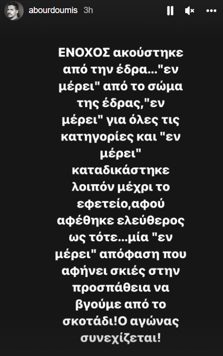 Ο ηθοποιός Αλέξανδρος Μπουρδούμης σχολιάζοντας το γεγονός ότι παρά την ενοχή του ο Δημήτρης Λιγνάδης θα αφεθεί ελεύθερος με περιοριστικούς όρους. «Μία “εν μέρει” απόφαση που αφήνει σκιές στην προσπάθεια να βγούμε από το σκοτάδι. Ο αγώνας συνεχίζεται», έγραψε μεταξύ άλλων.