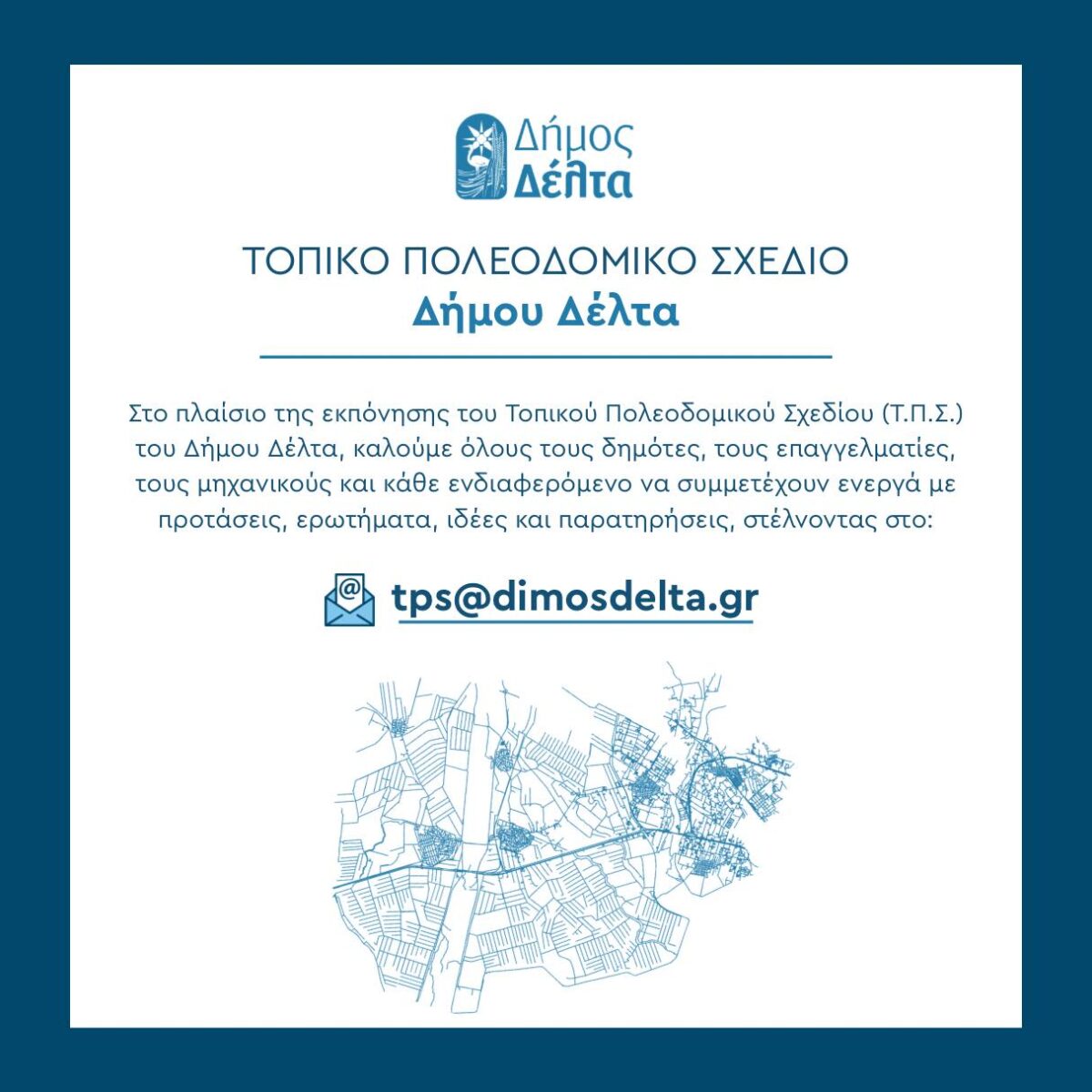 Οι προτάσεις μπορούν να αποστέλλονται ηλεκτρονικά στο: tps@dimosdelta.gr