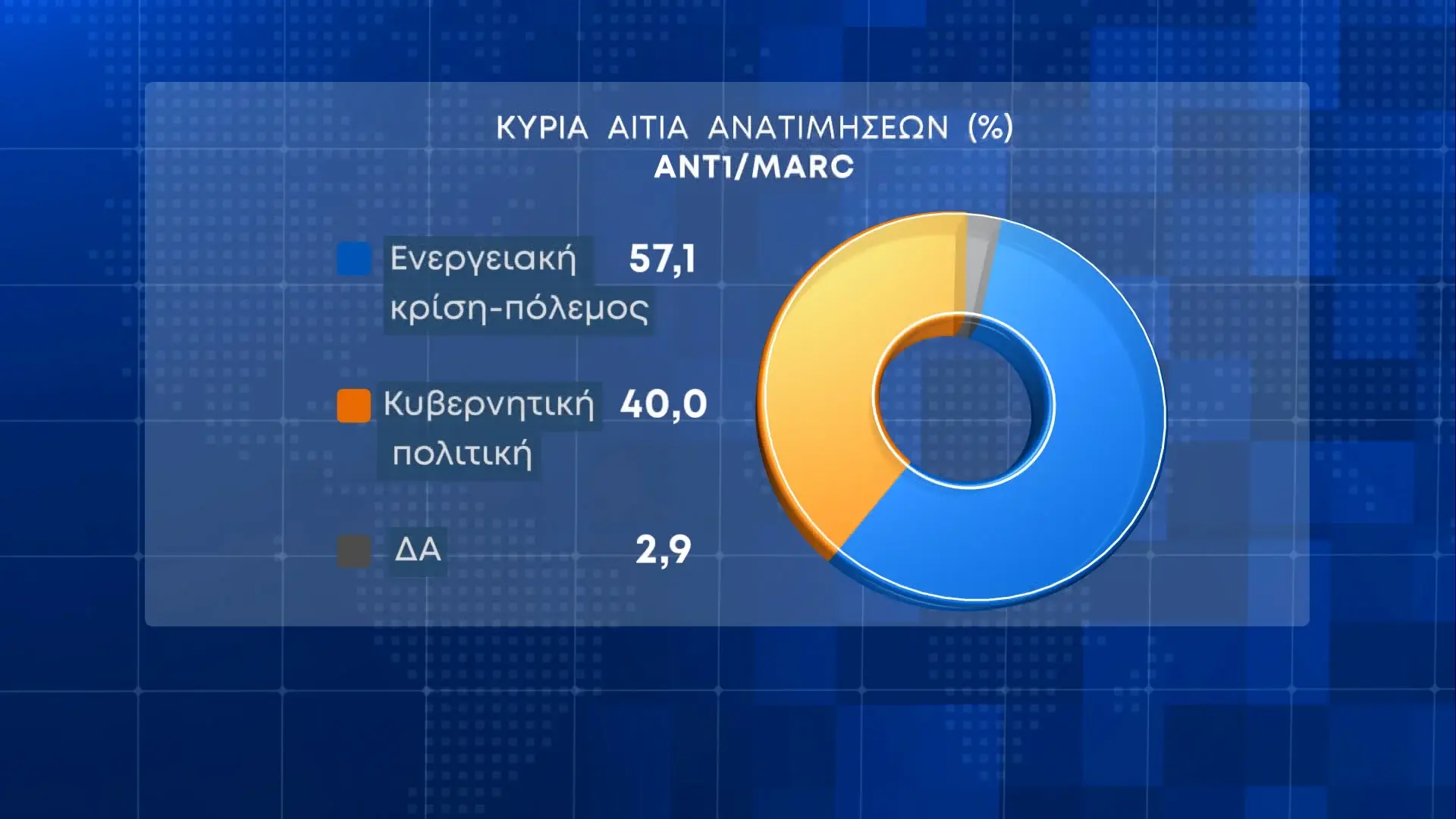 Όπως εκτιμούν οι πολίτες, η κύρια αιτία των ανατιμήσεων, είναι η ενεργειακή κρίση και ο πόλεμος με ποσοστό 57,1%, ενώ ακολουθεί η κυβερνητική πολιτική με 40%.