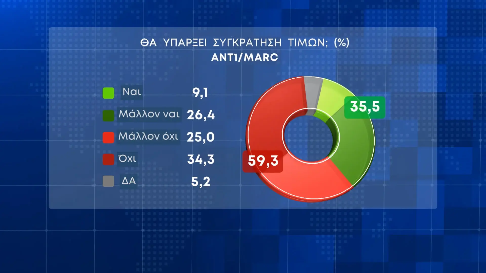 Το 59,3% των ερωτηθέντων εμφανίζεται απαισιόδοξο ως προς το αν θα υπάρξει συγκράτηση των τιμών, ενώ ένα 35,5% εμφανίζεται πιο αισιόδοξο.