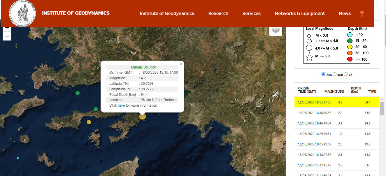 Σύμφωνα με την αυτόματη λύση από το Γεωδυναμικό Ινστιτούτο ο σεισμός είχε μέγεθος 4,2 βαθμούς της κλίμακας Ρίχτερ και το επίκεντρο του ήταν 36χλμ. βόρεια της Ρόδου. Σύμφωνα με την ίδια μέτρηση το εστιακού βάθος του είναι στα 54χλμ.