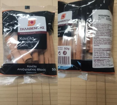 Συγκεκριμένα, πρόκειται για το προϊόν με ονομασία πώλησης Κανέλα-Αποξηραμένος φλοιός και εμπορική ονομασία «Σκλαβενίτης», σε συσκευασία των 50,0g, με αριθμό παρτίδας Lot 2405300840 και ημερομηνία ανάλωσης κατά προτίμηση πριν από 28/05/2026.