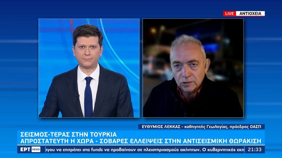 Ολοένα και μεγαλώνει ο απολογισμός των θυμάτων και των τραυματισμένων των φονικών σεισμών που χτύπησαν την Τουρκία και τη Συρία. Σχετικά με την εικόνα που επικρατεί στην Αντιόχεια μίλησε στην ΕΡΤ ο καθηγητής Γεωλογίας και πρόεδρος του ΟΑΣΠ, Ευθύμιος Λέκκας.