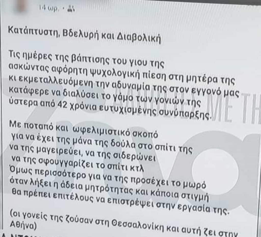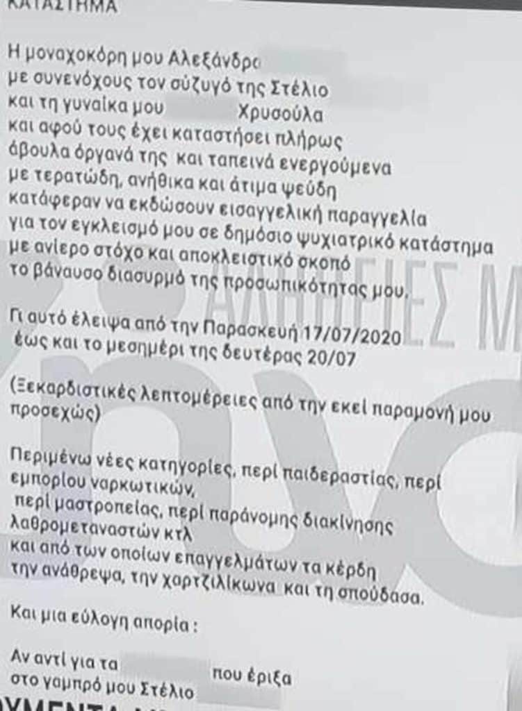 Μία μέρα πριν, μας έλεγε ότι αν δε γυρίσει σπίτι η μάνα μου, στο σπίτι μας θα χυθεί αίμα. Με ημερομηνία 16 Ιουλίου 2020, σε σπίτι που υπήρχε μωρό 10 μηνών. Δεν υπήρχε σεβασμός.