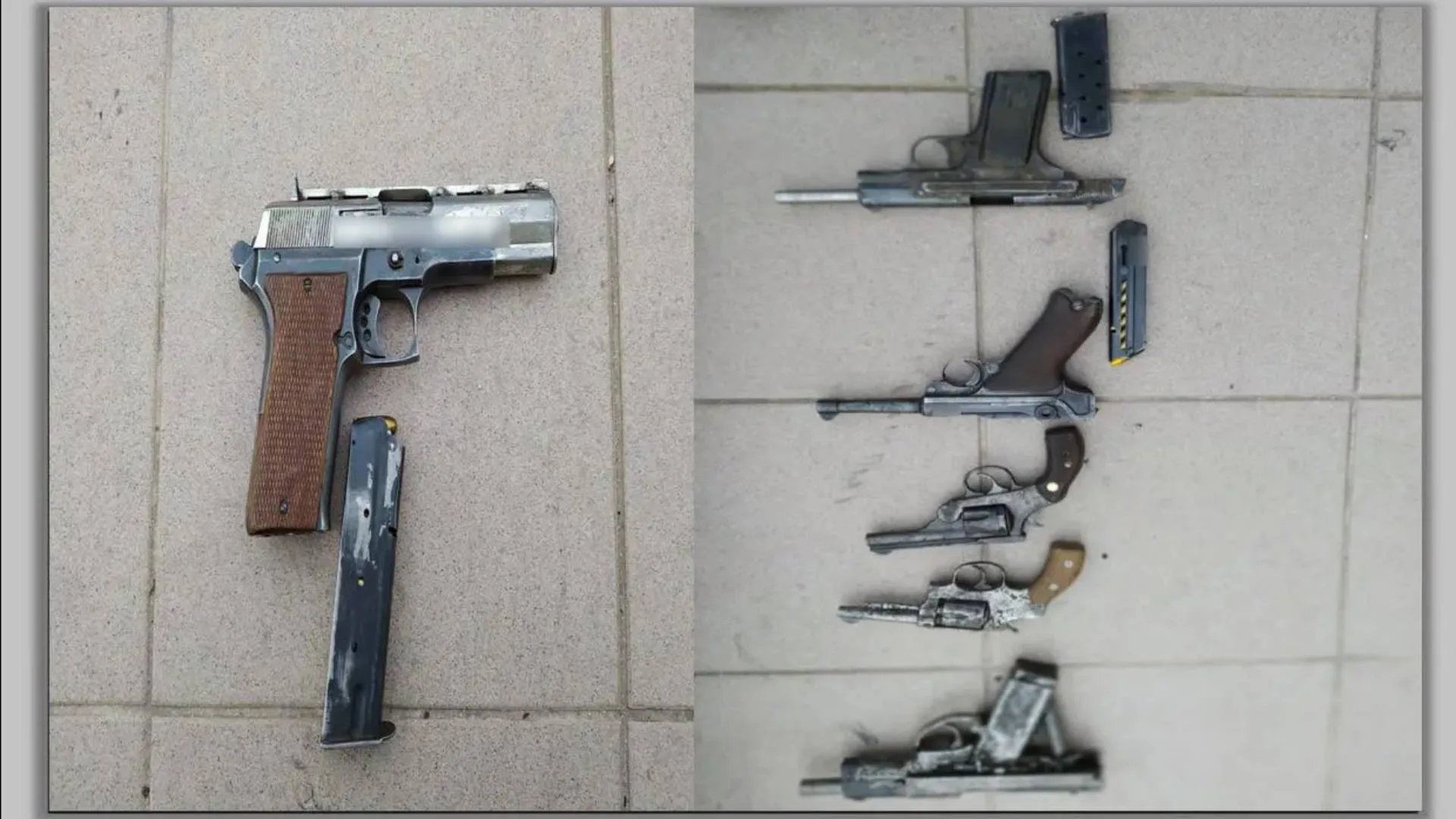 - 1 περίστροφο άγνωστης μάρκας,1 αυτοσχέδιο πιστόλι άνευ αριθμού με μία (1) γεμιστήρα αυτού,