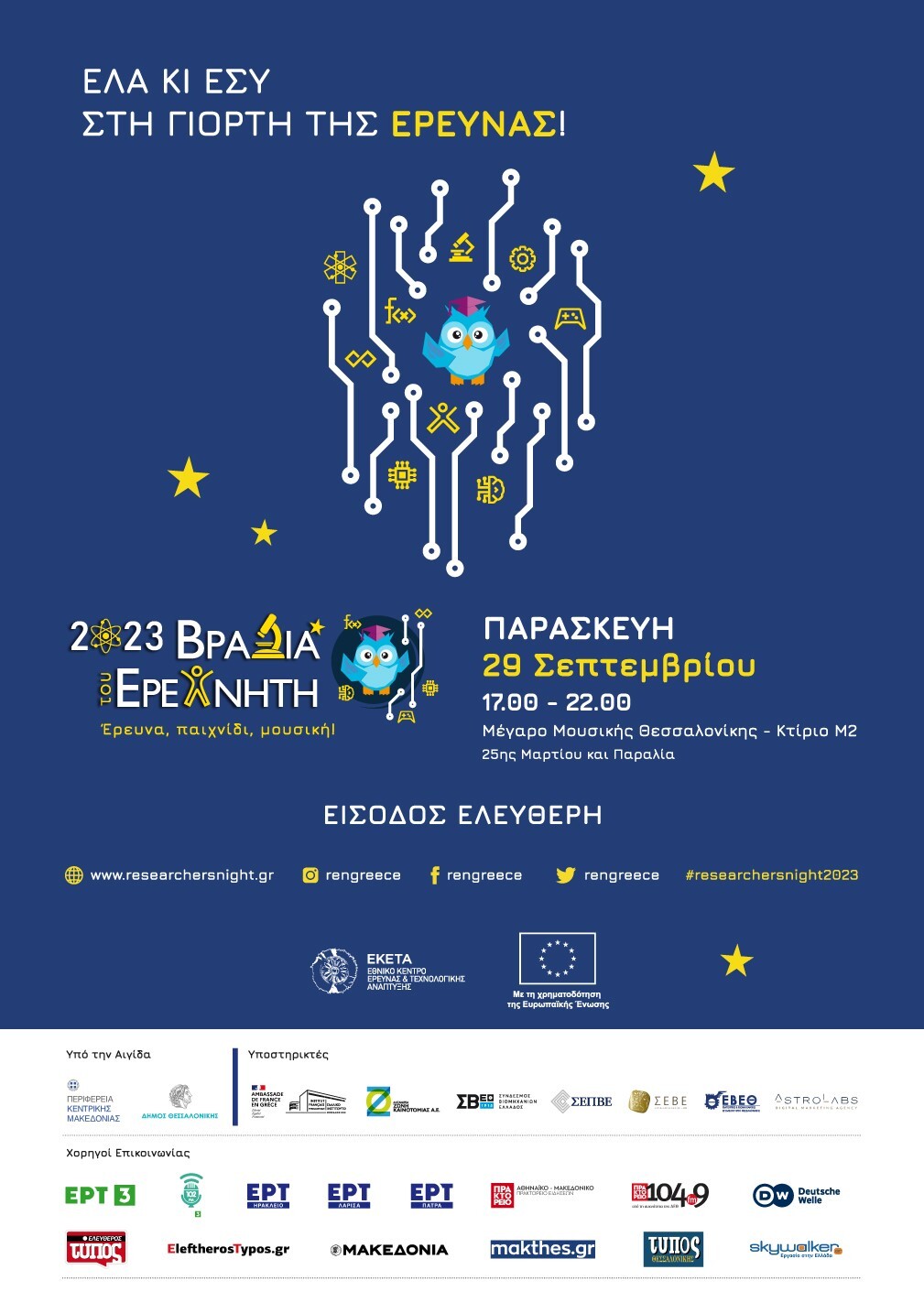 Να σημειωθεί ότι το ΕΚΕΤΑ, εκτός της διοργάνωσης της εκδήλωσης στην πόλη της Θεσσαλονίκης, συντονίζει επίσης τις εκδηλώσεις της «Βραδιάς του Ερευνητή 2023», σε συνεργασία με τους τοπικούς διοργανωτές, στις παρακάτω πόλεις: Αθήνα (Εθνικό Μετσόβιο Πολυτεχνείο), Ηράκλειο (Ίδρυμα Τεχνολογίας και Έρευνας), Πάτρα (Πανεπιστήμιο Πατρών), Λάρισα (Πανεπιστήμιο Θεσσαλίας) και Ρέθυμνο (Ελληνικό Μεσογειακό Πανεπιστήμιο).