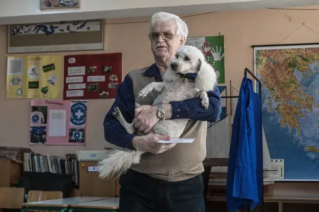 Έναν απρόσμενο επισκέπτη είχαν σε εκλογικό κέντρο στην Αθήνα. Ένας κύριος πήγε να ψηφίσει παρέα με τον σκύλο του και κατάφερε να χαρίσει κάποια από τα πιο γλυκά στιγμιότυπα των εθνικών εκλογών που είναι σε εξέλιξη.