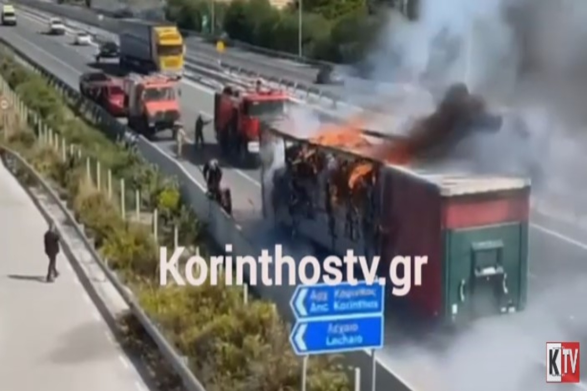 Το συμβάν έλαβε χώρα στο ύψος της Κορίνθου. Στο σημείο επιχειρούν 16 πυροσβέστες με 8 οχήματα.