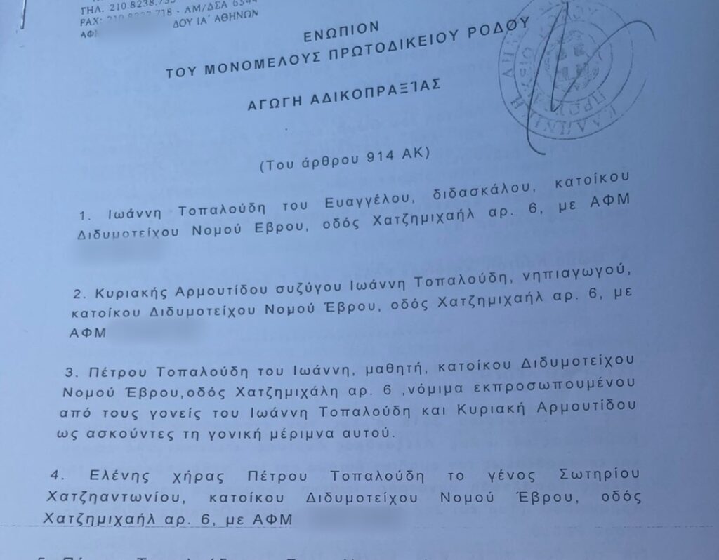 Με την αγωγή, που στρέφεται και εναντίον της οικογένειας των κατηγορουμένων για τη δολοφονία της φοιτήτριας, ζητείται χρηματική αποζημίωση ύψους 980.000 ευρώ.