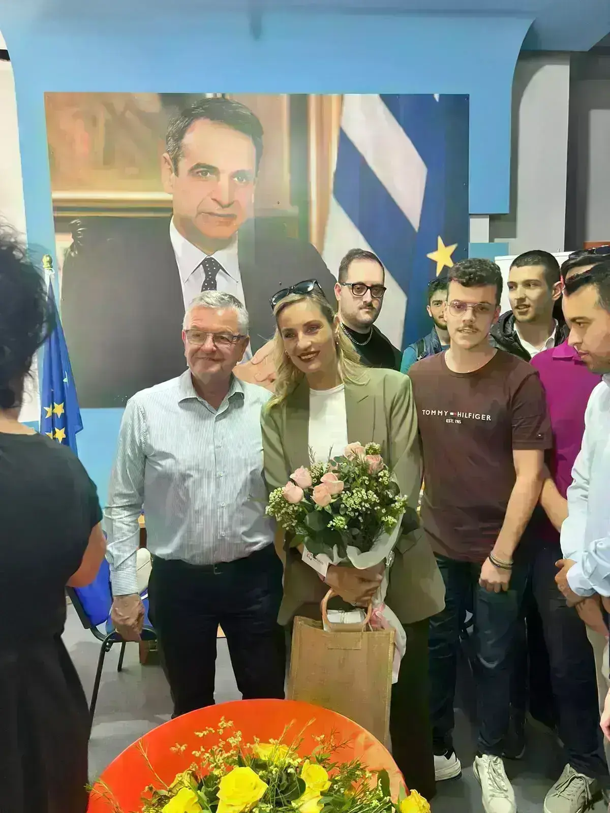 Λίγο πριν, η κα Μελέτη πραγματοποίησε συνάντηση στο Εκλογικό Κέντρο της Ν.Δ. στην Πάτρα με τον Πρόεδρο ΔΕΈΠ Αχαίας Αντώνη Κουνάβη, μέλη της οργάνωσης, στελέχη και μέλη της ΟΝΝΕΔ.