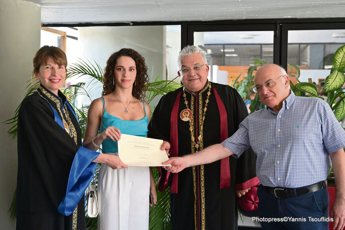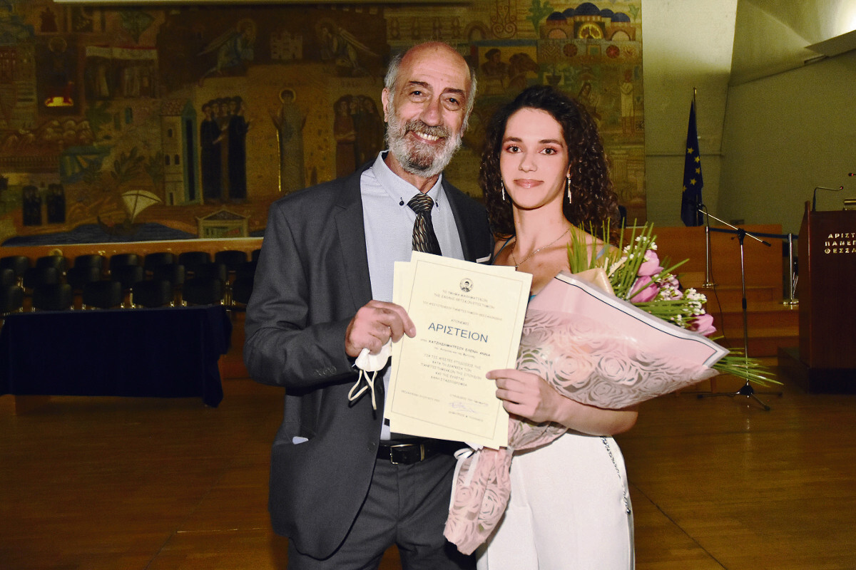 Πριν από μερικές μέρες, έγινε η τελετή ορκωμοσίας του τμήματος Μαθηματικών, όπου έλαμπε από χαρά και περηφάνια το πατέρας της, Αντώνης. Η απόφοιτη φωτογραφήθηκε και με τον πρόεδρο του τμήματος, Δημήτρη Πουλάκη, την κοσμήτορα της Σχολής, Χαρά-Μυρτώ-Αγάπη Χαραλάμπους, και τον πρύτανη του ΑΠΘ, Νίκος Παπαϊωάννου. Ολοι τη συνεχάρησαν για το επίτευγμα του «δέκα» στο πτυχίο της και της ευχήθηκαν να συνεχίσει σε αυτό το μοτίβο.