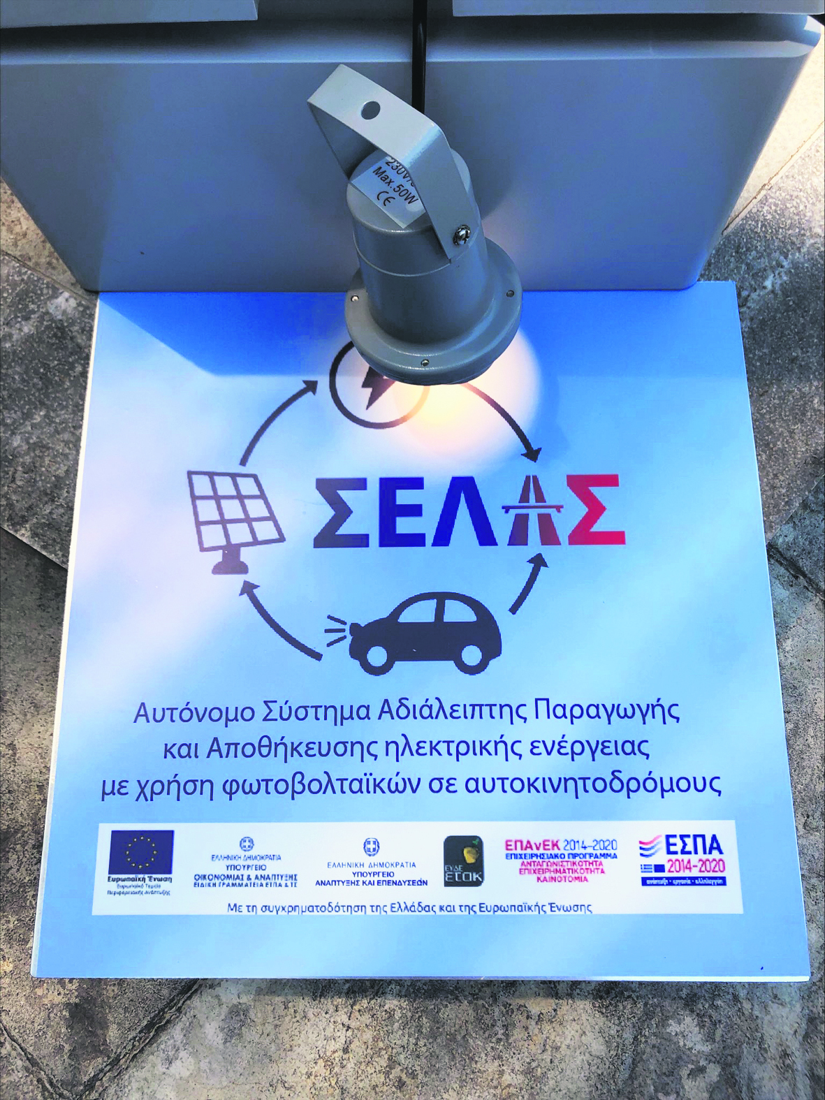 Ονομάζεται «ΣΕΛΑΣ» και αναπτύχθηκε στο πλαίσιο της ενιαίας δράσης «ΕΣΠΑ 2014-2020 – ΕΡΕΥΝΩ – ΔΗΜΙΟΥΡΓΩ – ΚΑΙΝΟΤΟΜΩ», με στόχο τη δημιουργία αυτόνομου συστήματος αδιάλειπτης παραγωγής και αποθήκευσης ηλεκτρικής ενέργειας με χρήση φωτοβολταϊκών σε αυτοκινητοδρόμους. Ηδη λειτούργησε πιλοτικά στο σταθμό διοδίων «Ανάληψη» της Εγνατίας Οδού.