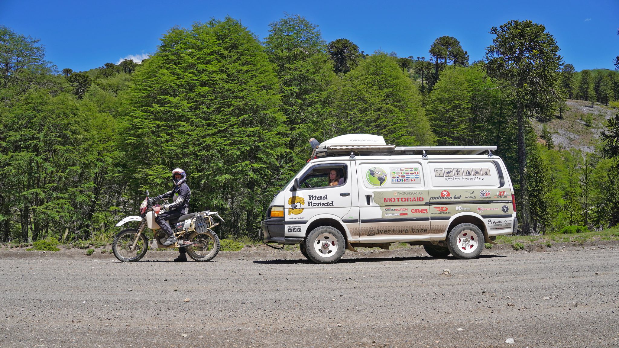 Πριν από σχεδόν δύο χρόνια, ο τότε 39χρονος και περισσότερο γνωστός ως… «mad nomad» και η συνοδοιπόρος του, Αγγελική, αναχώρησαν από τη Θεσσαλονίκη με μία μηχανή Honda XR250 και ένα 4Χ4 βανάκι μόλις… 34 χρόνων. Έφτασαν στη Μασσαλία, φόρτωσαν τα οχήματα σε καράβι και τον Σεπτέμβριο του 2023, τα παρέλαβαν από το… Μοντεβιδέο της Ουρουγουάης, όπου οι ίδιοι είχαν φτάσει αεροπορικώς. Η Αγγελική επέστρεψε στην Ελλάδα πριν από τρεις μήνες και πλέον συνεχίζει μόνος του.