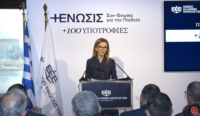 «Κυρία Πρόεδρε της Ένωσης Ελλήνων Εφοπλιστών θα ήθελα να σας ευχαριστήσω για την τιμητική πρόσκληση σε μία πολύ σημαντική εκδήλωση, παρουσίασης των νέων υποτροφιών. Είναι γεγονός ότι η ελληνική ναυτιλία, πέραν του γεγονότος ότι αποτελεί ένα πολύ σημαντικό εθνικό κεφάλαιο, κατά την άποψή μου αποτελεί και τον μεγαλύτερο στρατηγικό πυλώνα της χώρας, συνεισφέροντας τα μέγιστα στην εθνική μας οικονομία και στην ανάπτυξη της πατρίδας μας.