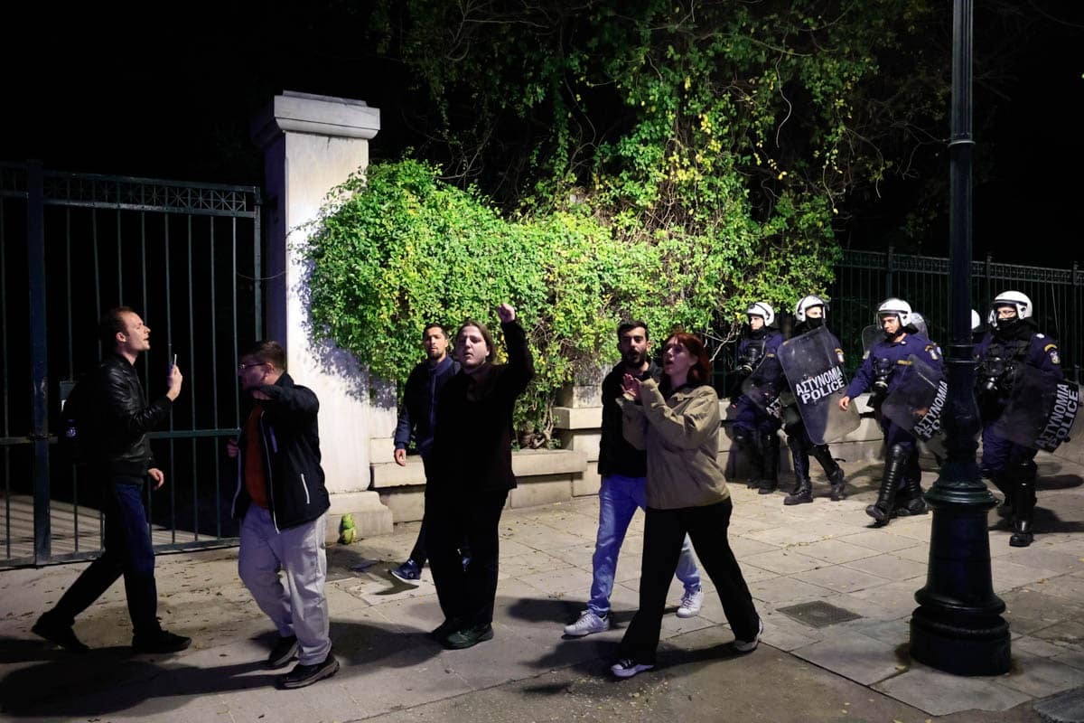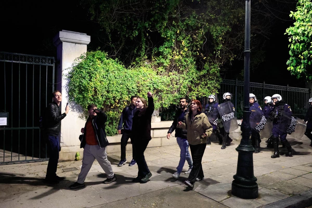 H oμάδα tvn φοιτητών εμφανίστηκε ξαφνικά έξω από το Μέγαρο Μαξίμου θέλοντας να ανοίξει πανό ενάντια στα ιδιωτικά πανεπιστήμια και το νομοσχέδιο που δόθηκε σήμερα στη δημόσια διαβούλευση με τις αστυνομικές δυνάμεις να προσπαθούν να τους απωθήσουν.