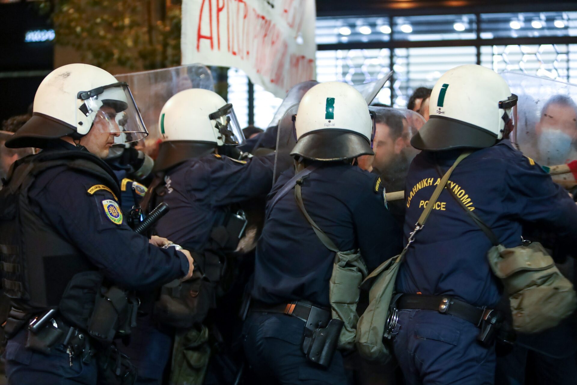 Σύμφωνα με την ΕΛΑΣ, οι διαδηλωτές, που ήταν συγκεντρωμένοι έξω από το γραφεία της Ευρωπαϊκής Ένωσης στην Πλατεία Κλαυθμώνος, συγκρούστηκαν με τους αστυνομικούς όταν επιχείρησαν να καταλάβουν το οδόστρωμα στην οδό Σταδίου. Στο σημείο υπήρξε ένταση μεταξύ διαδηλωτών και των αστυνομικών δυνάμεων, που προχώρησαν σε περιορισμένη χρήση χημικών.