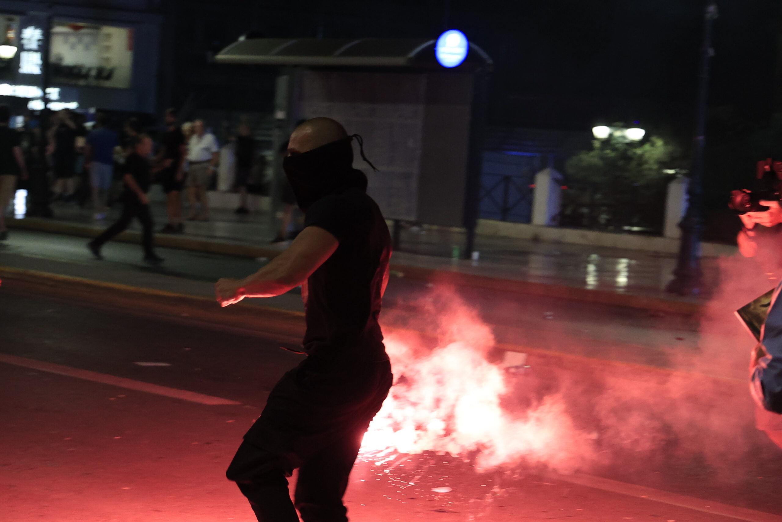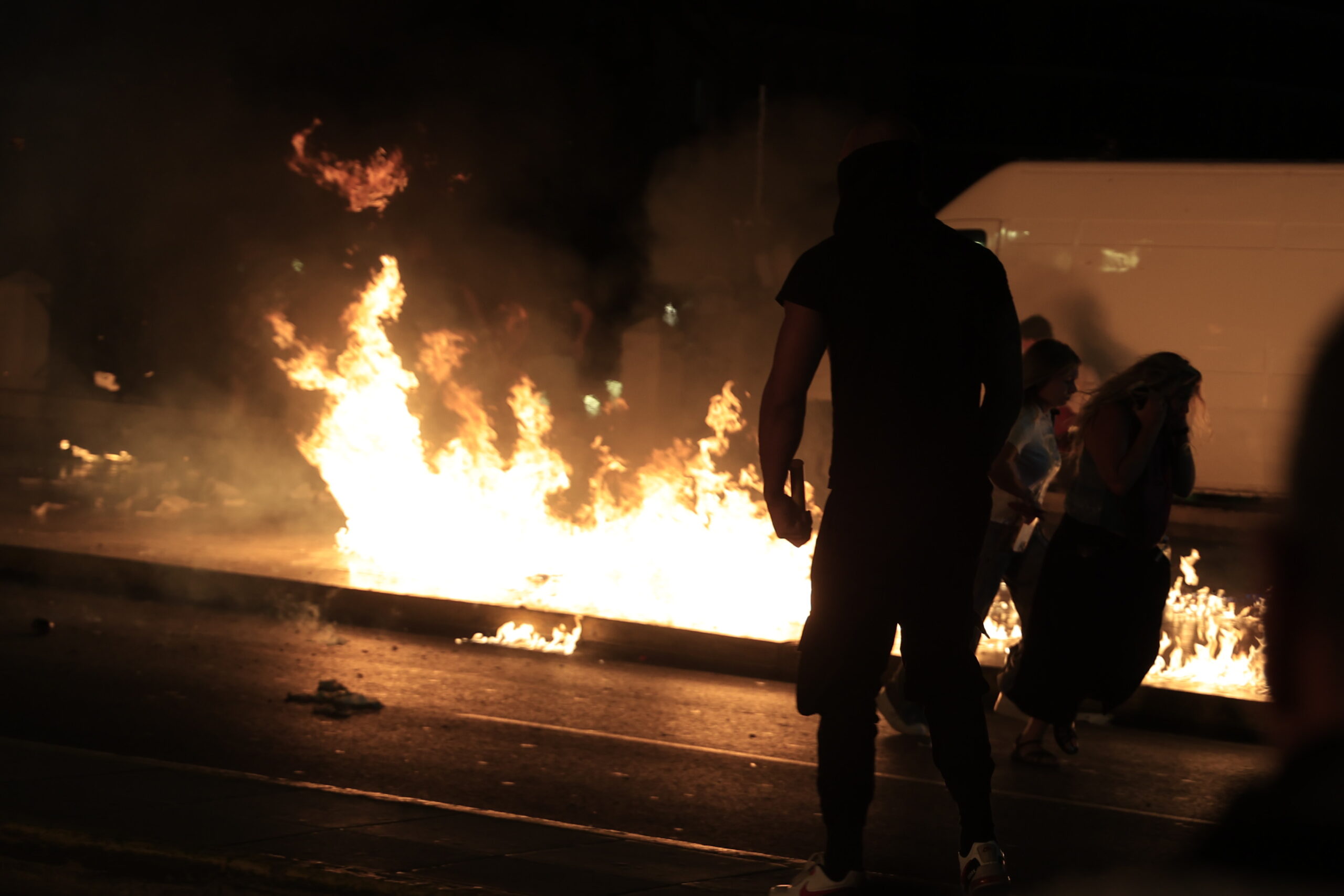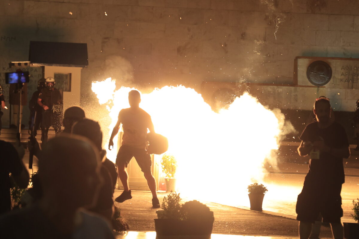 Αφού ολοκληρώθηκαν οι ομιλίες των συγγενών των θυμάτων άγνωστοι πέταξαν μολότοφ. Το πλήθος έχει άρχισε να αποχωρεί. Ειδικότερα, ομάδα ατόμων αποσπάστηκε από τον κύριο όγκο των διαδηλωτών και κινήθηκε προς τις αστυνομικές δυνάμεις που βρίσκονταν στο Μνημείο του Άγνωστου Στρατιώτη, και επιτέθηκε με «βόμβες» μολότοφ.