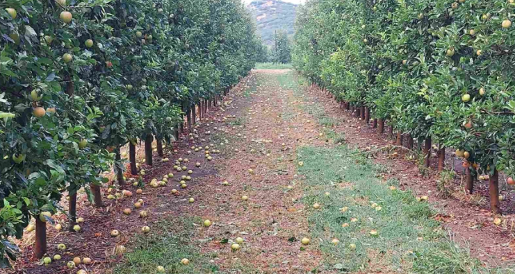 Από τη χαλαζόπτωση στην Αγιά προκλήθηκαν ζημιές και σε καλλιέργειες και ειδικότερα σε αχλάδια και μήλα.