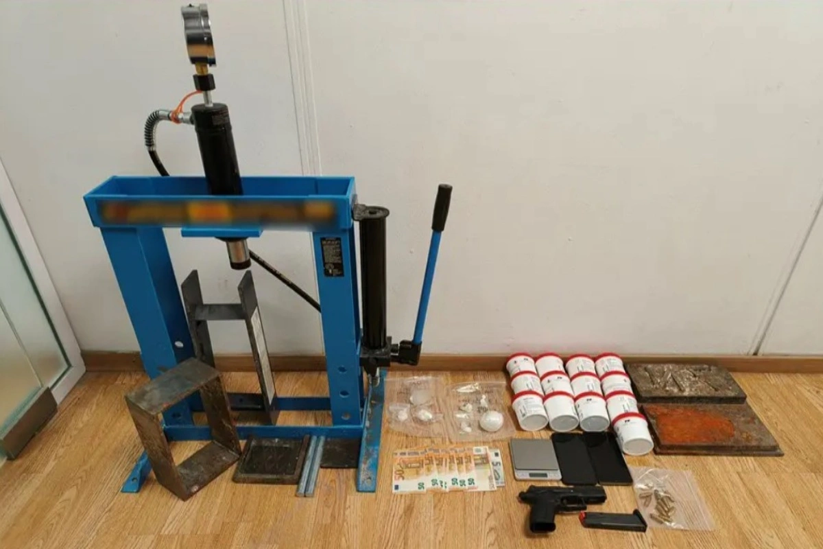 Σε έρευνα που ακολούθησε στο σπίτι του διαπιστώθηκε ότι είχε εγκαταστήσει και λειτουργούσε εργαστήριο νόθευσης και επανατυποποίησης κοκαΐνης, αποτελούμενο από υδραυλική πρέσα, με μεταλλικά καλούπια, κατάλληλη για την συμπίεση κοκαΐνης, σε μορφή πλάκας και συσκευασίες βορικού οξέος, πρόσφορο για τη νόθευση του ναρκωτικού.