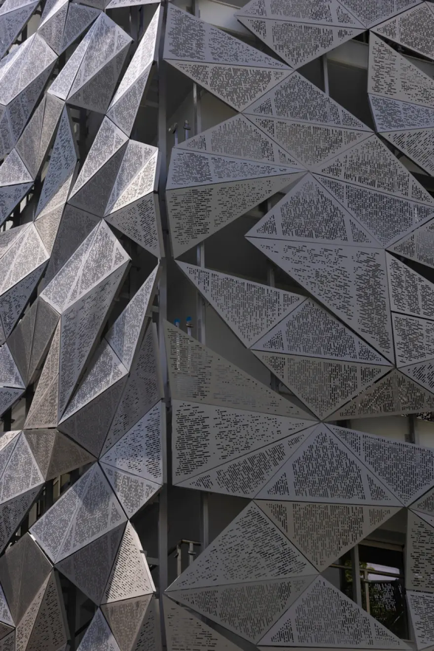 Η ιδιαιτερότητά του είναι ότι η πρόσοψή του θυμίζει κύματα, με τα σκίαστρα αλουμινίου να αλλάζουν χρώμα ανάλογα με τις διαθέσεις του καιρού, καθώς το κτίριο, όπως αναφέρουν οι μελετητές, έχει μία πράσινο-μπλε απόχρωση όταν πέφτουν επάνω του οι αχτίδες του ήλιου και μία καφετί απόχρωση όταν τα σύννεφα καλύπτουν την πόλη της Θεσσαλονίκης.
