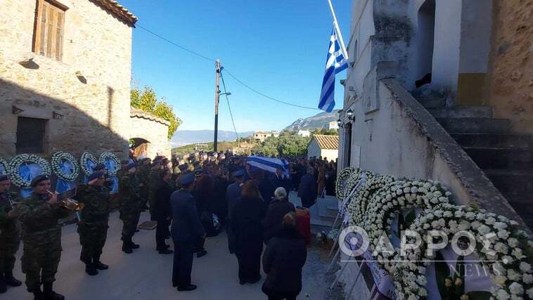 Σε κλίμα βαθιάς συγκίνησης μεταφέρθηκε η σορός του επισμηναγού (Ι) Επαμεινώνδα Κωστέα στον Ιερό Ναό Κοιμήσεως της Θεοτόκου Μεγάλης Μαντίνειας, όπου τελείται η εξόδιος ακολουθία υπό τον μητροπολίτη Μάνης κ. Χρυσόστομο.