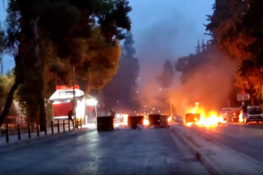 Τα άτομα που βγήκαν από την Πανεπιστημιούπολη έχουν βάλει φωτιές σε κάδους και επιχειρούν να στήσουν οδοφράγματα. Νωρίτερα, κατά τις 17:30, είχε προηγηθεί συγκέντρωση στην Πολυτεχνειούπολη.