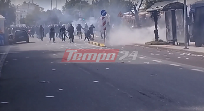 Συγκεκριμένα στο ύψος του σιδηροδρομικού σταθμού του ΟΣΕ, αντιεξουσιαστές που βρίσκονταν στο τέλος της πορείας επιτέθηκαν σε δυνάμεις της Αστυνομίας με πέτρες, καδρόνια και μπογιές. Τα δε ΜΑΤ απάντησαν με χρήση χημικών.