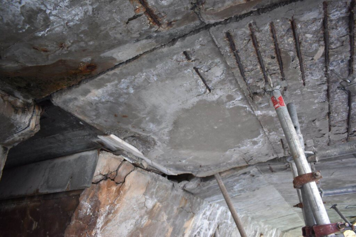 Ομως, όταν ο εργολάβος έπιασε δουλειά σε ένα από τα σημεία της γέφυρας, αποκαλύφθηκε ότι το πρόβλημα ήταν πολύ πιο σημαντικό. Συγκεκριμένα, διαπιστώθηκε ότι στον 6ο πρόβολο, στο ρεύμα από Σέρβια προς Κοζάνη, σε σημείο της ρωγμής, στο πιο αδύνατο σημείο υπήρχε μεγαλύτερο βάθος. Στον καθαρισμό του τσιμέντου για να βρεθεί ένας τένοντας (συρματόσχοινο) διαπιστώθηκε ότι έχει οξειδωθεί κατά 15 πόντους. Συνολικά, δύο από τους τέσσερις εσωτερικούς τένοντες του 6ου προβόλου έχουν σημαντικές φθορές, έχοντας οξειδωθεί σε πολύ μεγάλο ποσοστό, άνω του 50%. Ετσι, το πρόβλημα είναι μεγαλύτερο από το αρχικό, αφού πλέον υπάρχουν δύο τένοντες φθαρμένοι και η εξωτερική τους ενίσχυση απαιτεί επιπλέον παρεμβάσεις, πέρα από την εφαρμογή εξωτερικής προέντασης, που δεν ήταν προβλέψιμες στη μελέτη.