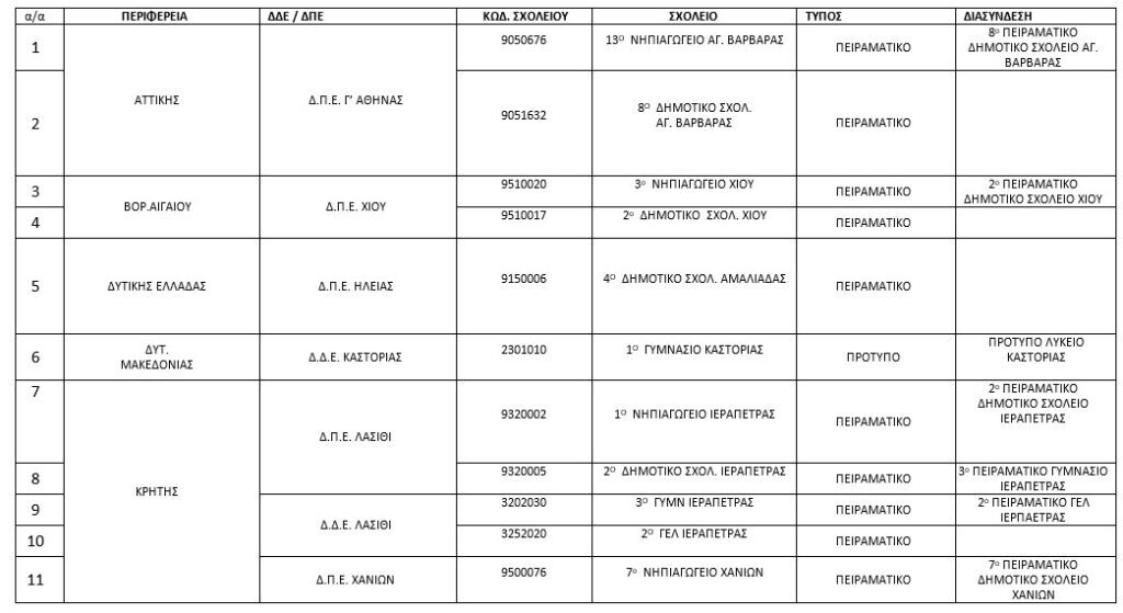 Δ) Το 7ο Πειραματικό Νηπιαγωγείο Χανίων συνδέεται και αποκτά κοινό ΕΠ.Ε.Σ. με το 7ο Πειραματικό Δημοτικό Σχολείο Χανίων