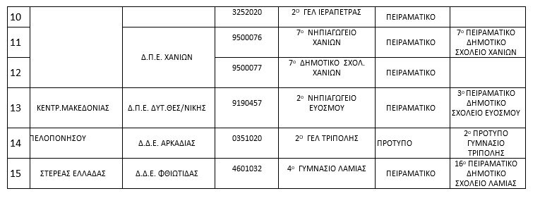 Η) Το 4ο Πειραματικό Γυμνάσιο Λαμίας συνδέεται και αποκτά κοινό ΕΠ.Ε.Σ με το 16ο Πειραματικό Δημοτικό Σχολείο Λαμίας.