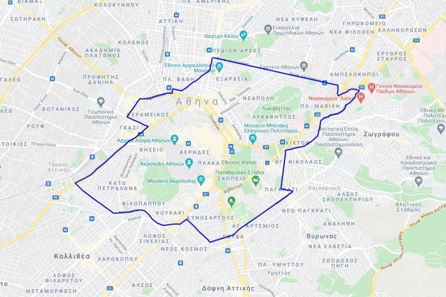 Σύμφωνα με την ΚΥΑ που αφορούσε την περίοδο 2022-2023, από τους περιορισμούς εξαιρούνται και εισέρχονται ελεύθερα στο κέντρο της Αθήνας: