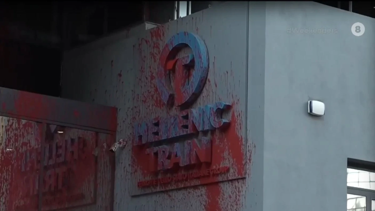 Σύμφωνα με τις πληροφορίες, η επίθεση έγινε από μια ομάδα περίπου 15 ατόμων, που έσπασε τζάμια και εκτόξευσε κόκκινες μπογιές με χρήση πυροσβεστήρων.