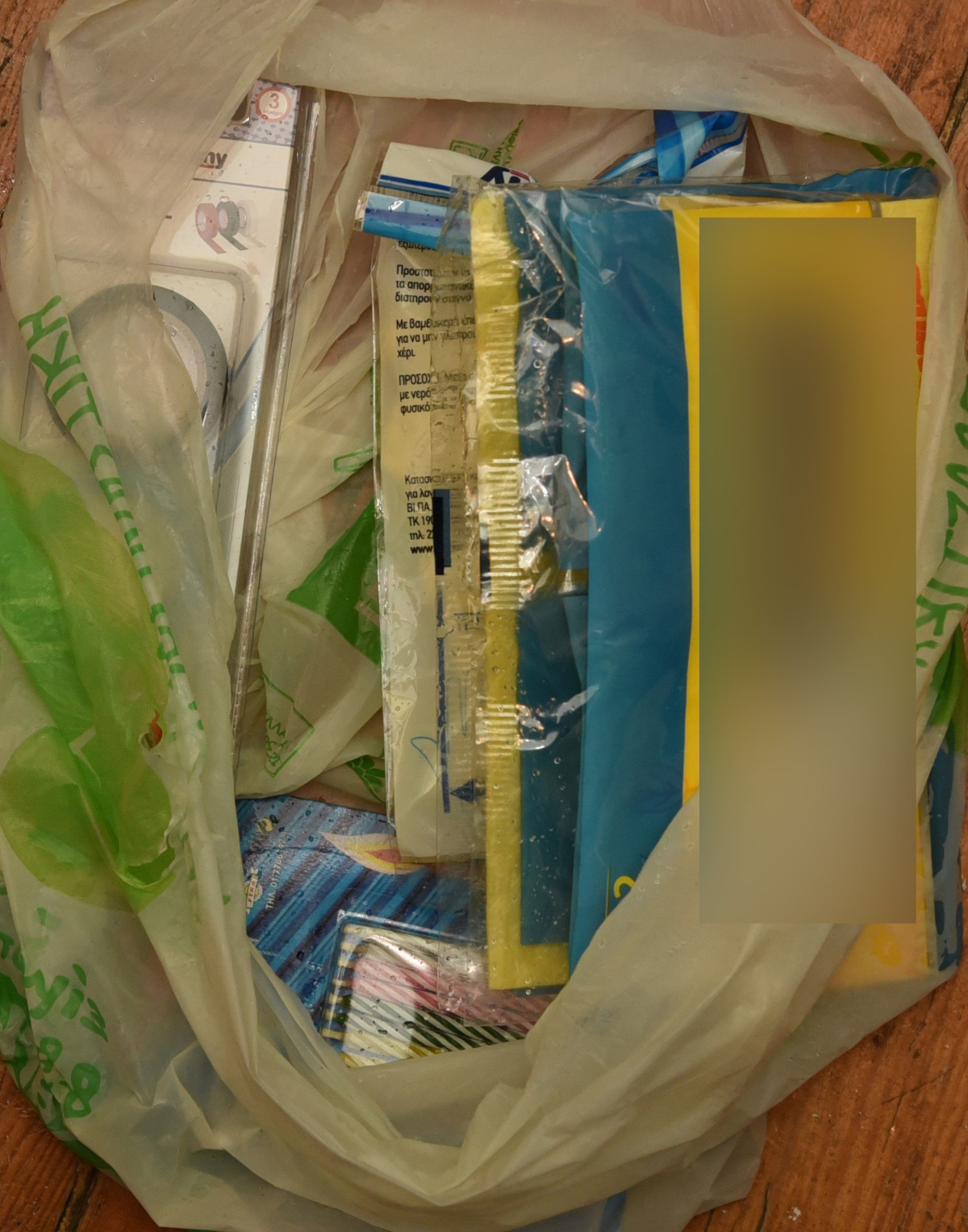 - σακούλα που περιείχε μονωτικές ταινίες, ελαστικά γάντια καθαρισμού, απορροφητικό πανί καθαρισμού και κεράκια,