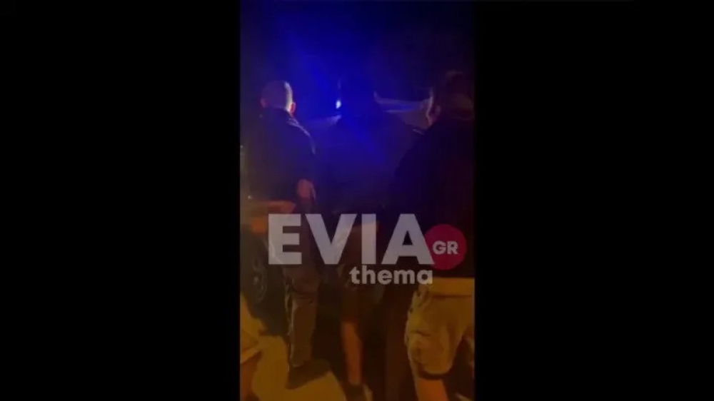 Η ομάδα νεαρών όπως δείχνει το βίντεο που εξασφάλισε το eviathema.gr, το βράδυ της Κυριακής έχει περικυκλώσει το περιπολικό.