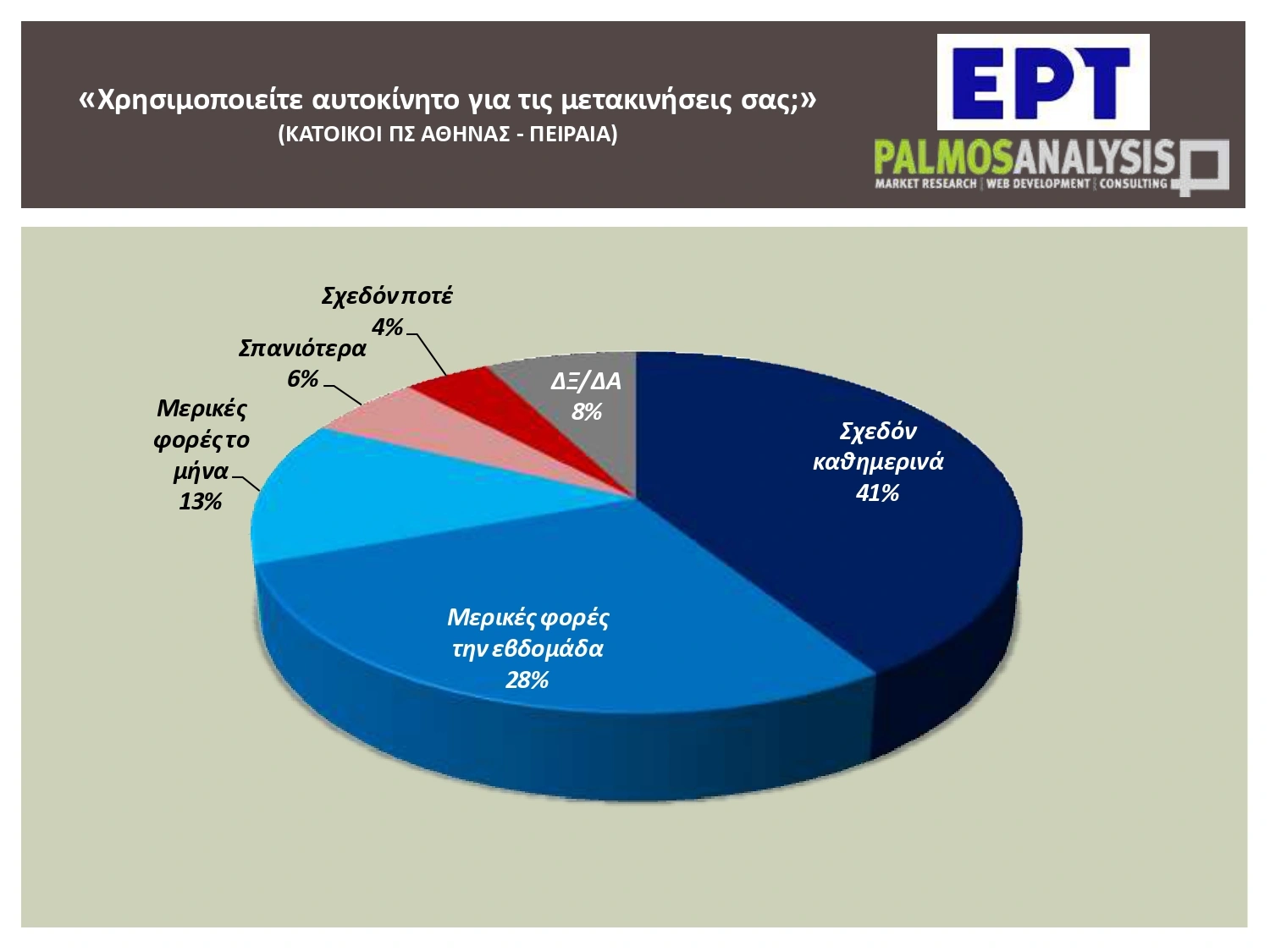 - Σχεδόν 4 στους 10 κατοίκους του ΠΣ Αθηνών – Πειραιώς (41%) χρησιμοποιούν ΙΧ αυτοκίνητο καθημερινά για τις μετακινήσεις τους.
