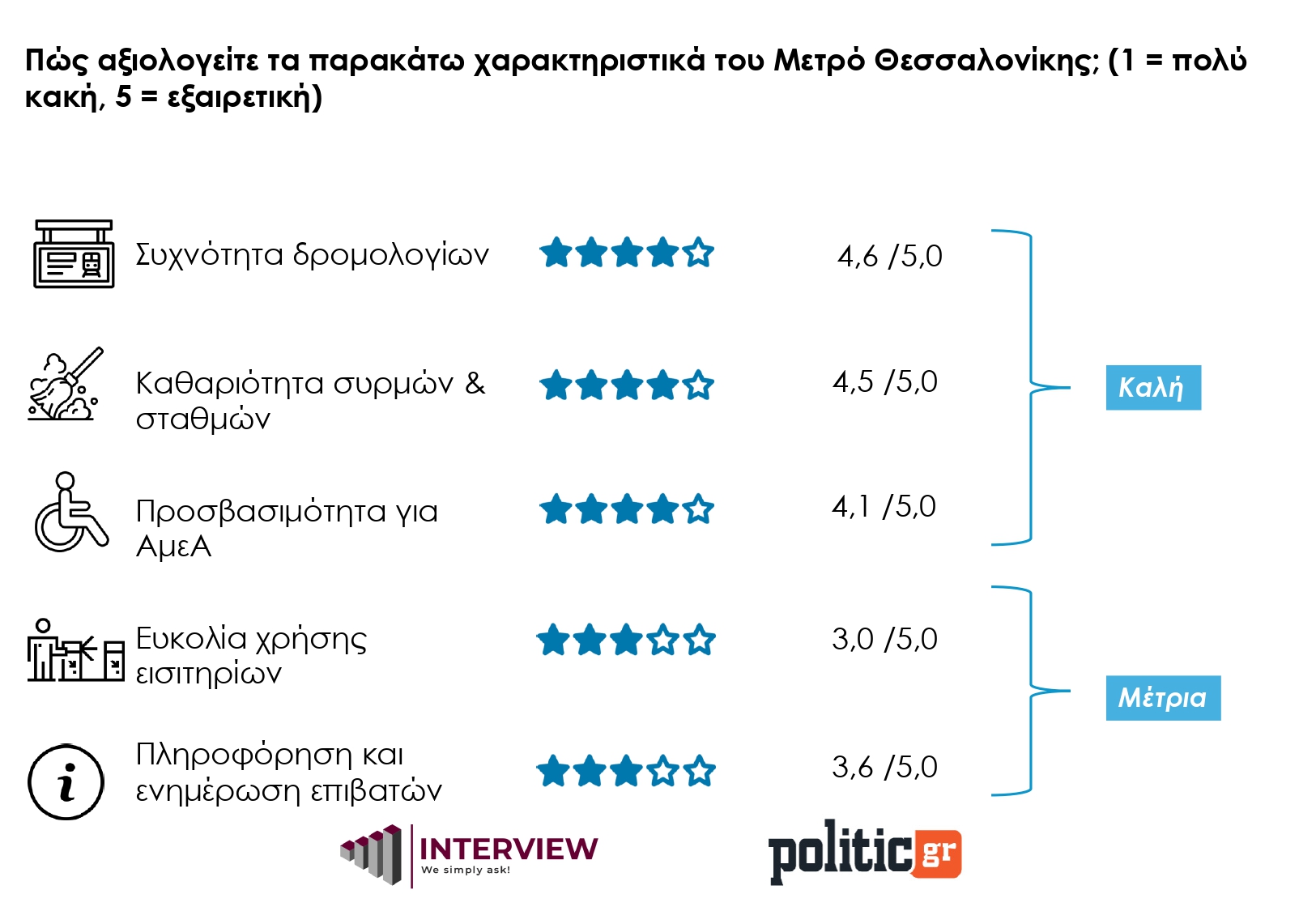 Ωστόσο, η υψηλή συχνότητα βλαβών και καθυστερήσεων αναδεικνύεται σε σημαντικό ζήτημα, ενώ η ανάγκη ταχείας επέκτασης του δικτύου παραμένει κορυφαία προτεραιότητα για τους Θεσσαλονικείς.