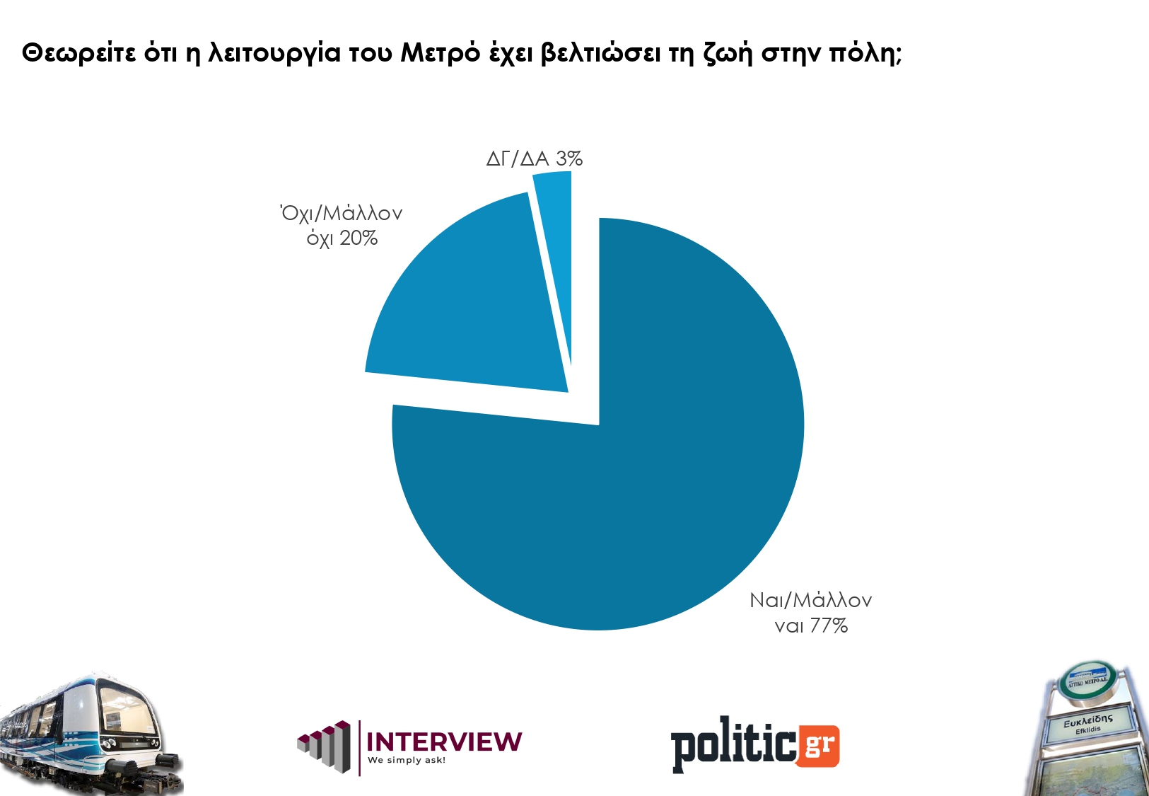 Σύμφωνα με δημοσκόπηση της Interview για την POLITIC που διεξήχθη τον Φεβρουάριο του 2025, το 93% των ερωτηθέντων έχει χρησιμοποιήσει το Μετρό τουλάχιστον μία φορά από την έναρξη της λειτουργίας του.
