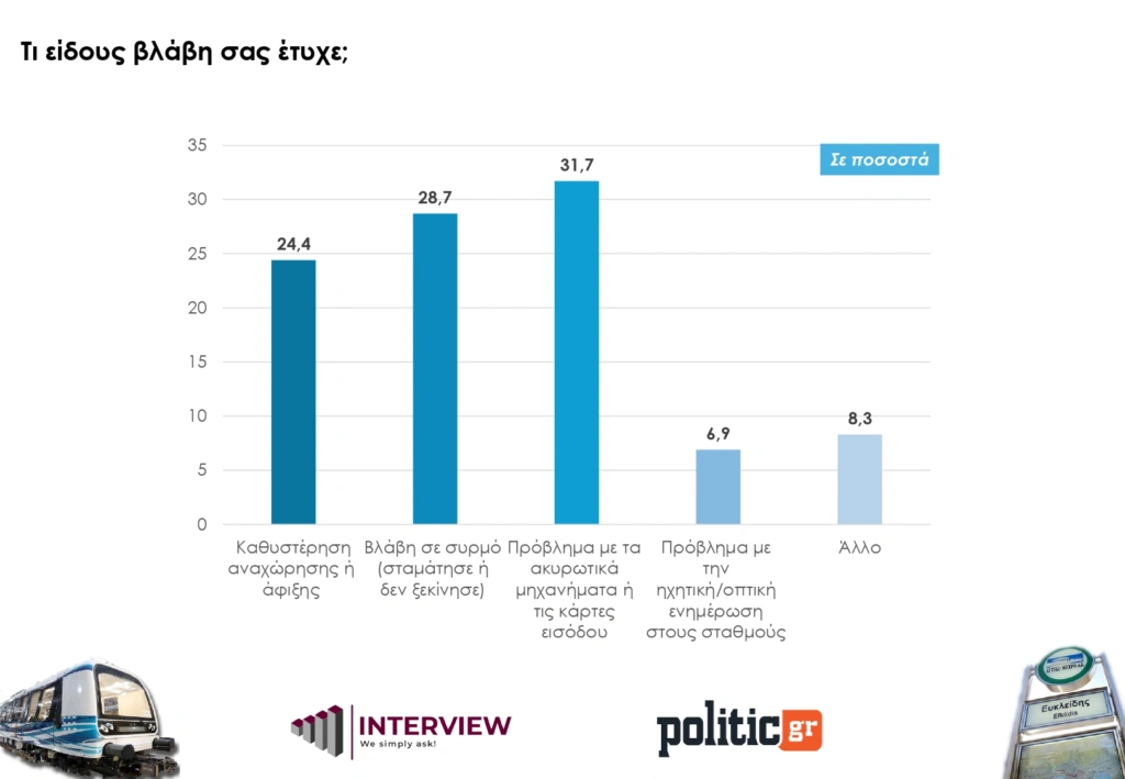 28,7%: Βλάβη συρμού (σταμάτησε ή δεν ξεκίνησε).
