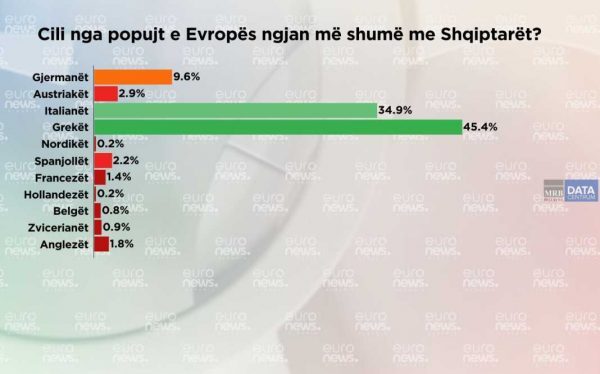 Το παραπάνω «παράδοξο» ανέδειξε το Βαρόμετρο του Euronews Albania. Πιο συγκεκριμένα, στην ερώτηση ποιο είναι το έθνος με το οποίο πιστεύουν ότι μοιάζουν περισσότερο, το 45,4% των ερωτηθέντων απάντησαν οι Έλληνες. Η δεύτερη δημοφιλέστερη απάντηση με 34,9% ήταν οι Ιταλοί που όμως, όσον αφορά τις διακρίσεις, σε αντίθεση με τους Έλληνες, αντιπροσωπεύουν μόνο το 3,5%.