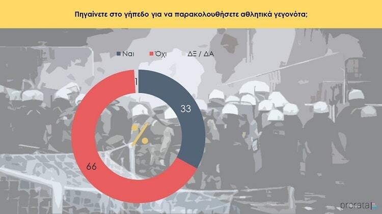 Οι ερωτώμενοι δήλωσαν ότι σε ποσοστό 66% δεν πηγαίνουν στο γήπεδο για να παρακολουθήσουν κάποιο αθλητικό γεγονός.